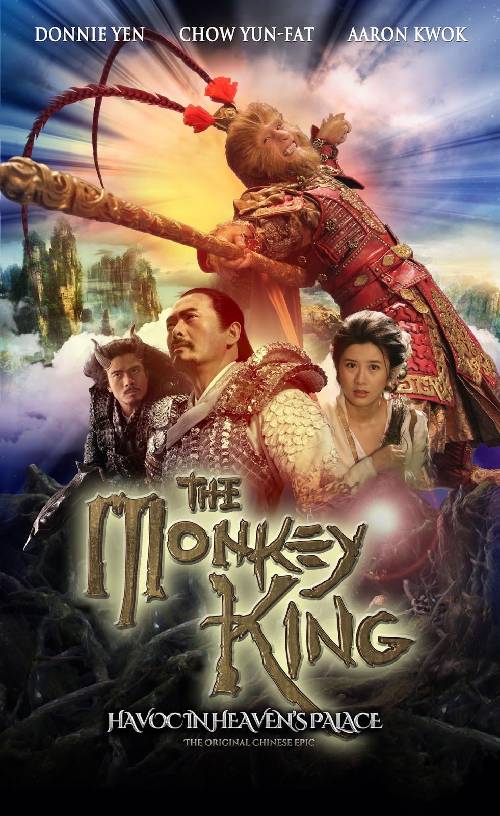 Based on the first several chapters of the novel, the movie basically functions as Sun Wukong’s origin story, beginning with his birth following a protracted battle between the forces of gods and demons. It’s table setting that goes on for an unforgivably long time before the benevolent Jade Emperor (Chow Yun Fat) banishes the Bull Demon King (Aaron Kwok) to a hellish CGI landscape for all eternity. Wukong is born from the aftermath of that battle, and the Demon King quickly recognizes him as a pawn to be used to force his way to heaven and overthrow the gods.