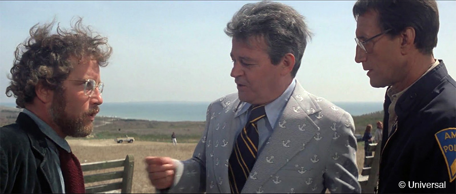 “I thought this was supposed to be a horror movie” was what I was thinking during the sequence when the trio were chasing the shark and shooting harpoons that would attach the yellow barrels to its hide. Quint standing on the end of the bow pulpit, while Hooper steers the Orca in pursuit, is made all the more memorable by the musical cue from the score called “One Barrel Chase.” This wasn’t a horror movie; it was an adventure! Man versus nature on the most timeless of battlegrounds. The sequence just thrilled me, and gone was any sense of dread I may have been feeling going into the screening.