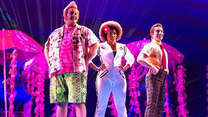Though a typical episode runs in two 11 minute stories, the musical stretches the tale out to a full two hours and 25 minutes. This is fine for the many Millennials and Xennials in the audience, but it made for a row of very anxious 8 year olds in front of me. Luckily, there were many extra effects to pique their interests. From silly ensemble bands and skits before the main acts to colorful jellyfish swimming through the aisles, there were many offstage elements to interact with in between the high energy pop songs.