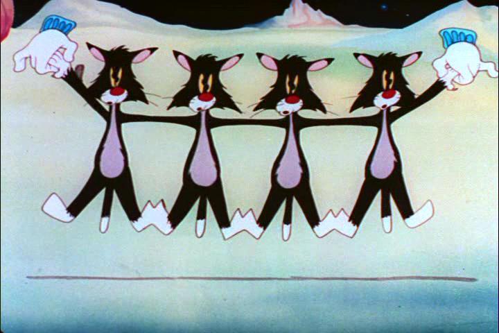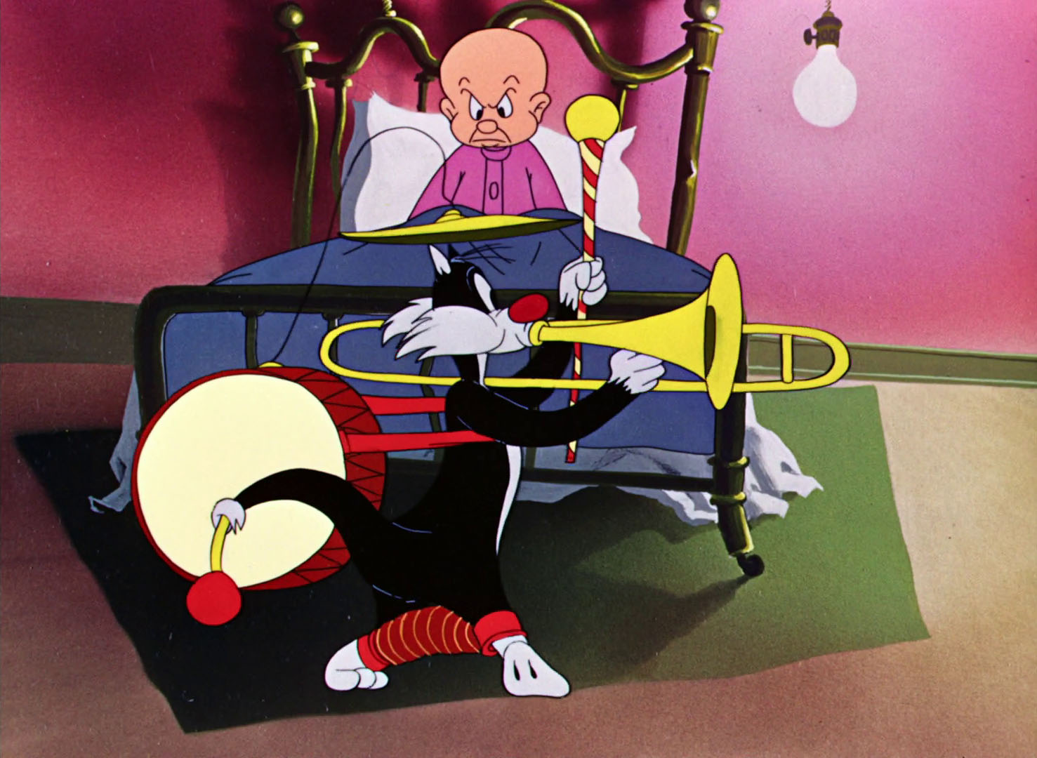While Chuck Jones and Bob Clampett directed some of Warner’s finest music-related cartoons, Friz Freleng was really the music guy. He timed his cartoons out on musical bar sheets rather than the typical exposure sheets, and he directed more music-centered cartoons than anybody (Rhapsody in Rivets, Pigs in a Polka, Rhapsody Rabbit, The Three Little Bops, to name but a few). Back Alley Oproar is one of his all-time best, a cartoon bursting at the seams with joy and easily Sylvester’s finest performance (one of Mel Blanc’s, too; he’s gotta be the master at singing “funny”).