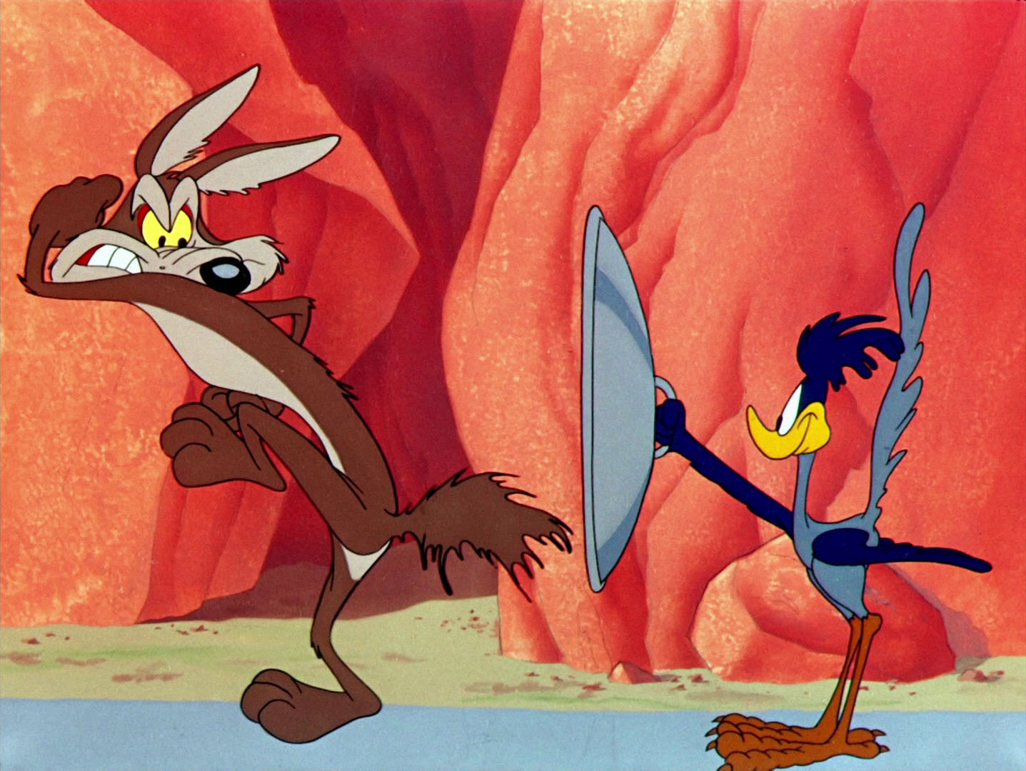 Jones and Maltese originally conceived the Road Runner as a parody of chase cartoons, apparently because of the obscurity of the animals used (as opposed to, say, a cat chasing a mouse) and the fact that the Coyote mostly defeats himself without much help from the Road Runner. Despite the initial hint of parody, however, the Road Runner series is probably the most iconic representation of the cartoon chase format. In fact, the films are a good demonstration of the axiom “less is more”; series like Tom & Jerry and Sylvester & Tweety could place the action in different settings, add new characters to the mix, involve dialogue, etc. But the Coyote and the Road Runner boil the conflict down to its essence, pitting two characters against each other in a barren landscape, with no talking, no added characters and no changes. Far from making the cartoons dull or unimaginative, these self-imposed limitations light up Jones’ creativity, setting an exciting artistic restriction out of which Jones pulls off masterful gag after masterful gag.