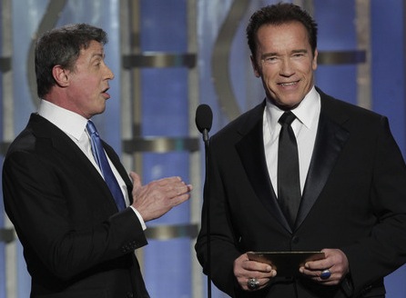 - Costner proved he’s hot again by winning for Best Actor in a Miniseries or Movie. Sly Stallone and Arnold Schwarzenegger on the other hand caused the largest sudden drop in ratings for an awards program in television history. The ratings went up as soon as their presentation for Best Foreign Language Film was over and it was safe to return to NBC.
