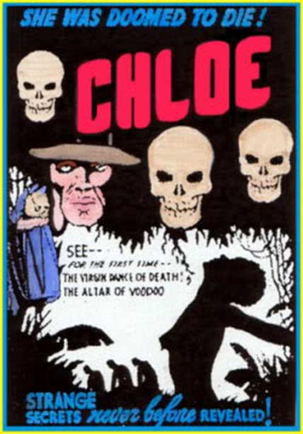I love this one. It’s a “race” picture like Chloe (see above) but the mixed-race anti-heroine is herself a voodoo priestess. She creates love charms to seduce our white hero. When she can’t get the guy, she raises two shirtless zombies from their graves! At the end she meets a fairly nasty demise.