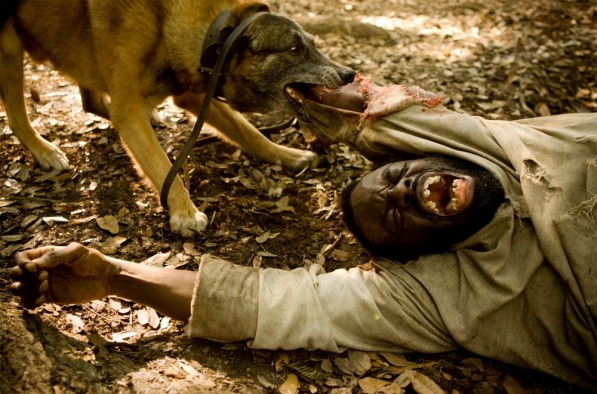 Django definitely has some of that cinematographer’s cream-dream material, but the film puts it side-by-side with the savage brutality that makes such a gilded gentry possible. You ride up to the grand plantation house, and on the side of the main entrance is the hotbox. A casino house features two men beating each other to death in the upstairs parlor. Runaways are torn apart by dogs.