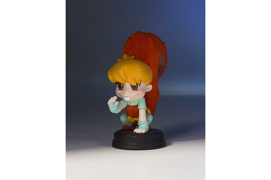 Squirrel Girl, posed here as she was seen on the variant cover of Unbeatable Squirrel Girl #1, is the FIRST flocked character in the Gentle Giant statue line.