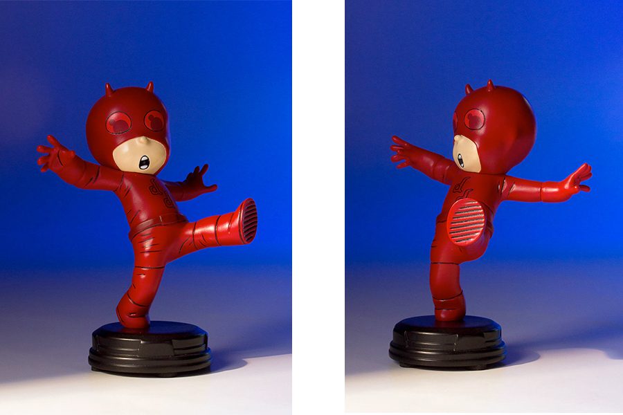 “The Kid Without Fear”…well… maybe a LITTLE bit of fear, joins the Gentle Giant Ltd. Marvel Animated Statue series. Daredevil will be the 13th character in our popular and adorable Marvel animated statue line. The blind acrobat crime fighter is clearly still learning the ropes in this statue, inspired by the month long variant cover event that helped birth these statues. The Daredevil Animated Statue was digitally sculpted and carefully printed on state of the art 3D Systems 3D printers. The high-resolution prints were then used in the creation of prototypes needed to produce this animated collectible. Each animated statue is hand-cast, hand-painted, and hand-numbered with a limited edition certificate of authenticity. You’d have to be blind not to love it!