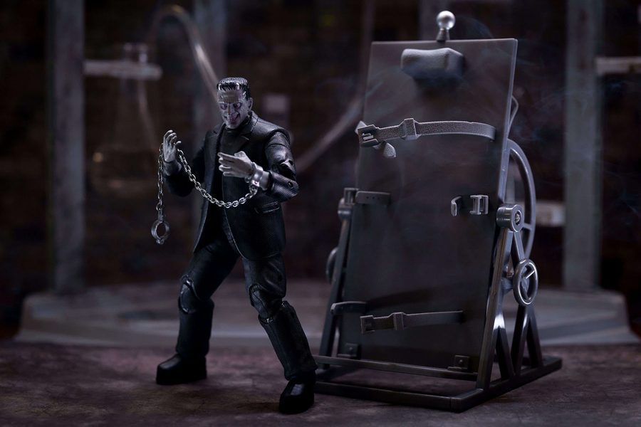 The sculpt captures Boris Karloff’s poignant portrayal of the misunderstood monster in authentic black-and-white just like the movie. Standing in 7” scale, the figure comes in premium anniversary packaging with plenty of accessories: 3 interchangeable heads, 6 interchangeable hands, shackles and daisies.