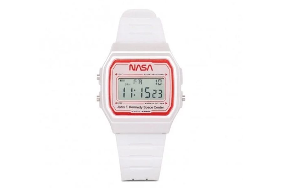 In spaceship white, with the NASA logo emblazoned in red, this watch is ideal for nostalgic or NASA aficionados!