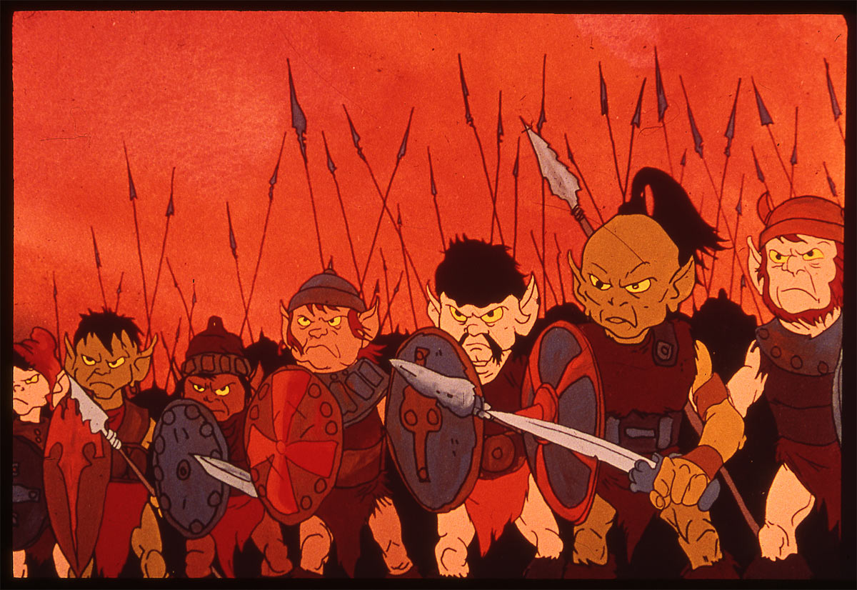 The rest is like Lord of the Rings (which Bakshi later struggled to make on a too-tight budget) as told by Quentin Tarantino: lots of gory slaughter interspersed with funny character dialogues, particularly on the part of the bad guys. There are also many little disturbing moments that give weight to the action: enslaved pixies, murdered innocents, elves mowed down by machine guns. Hey, it’s an allegory about fascism, what do you expect?