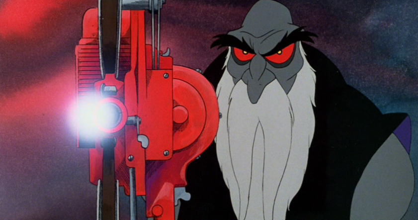 Some folks take issue with the technology-is-evil message of the film, but I think there’s an interesting contradiction in that Avatar has a jukebox, and a gun is the ultimate salvation of the world. The most dangerous weapon in Black Wolf’s arsenal is an old movie projector, so clearly it’s not technology that’s the problem, but the uses to which it is put. Avatar may believe in peace, but he also believes in war, and the message of Wizards is one of pragmatism, not idealism: Evil does not play by the rules, so neither can the Good.